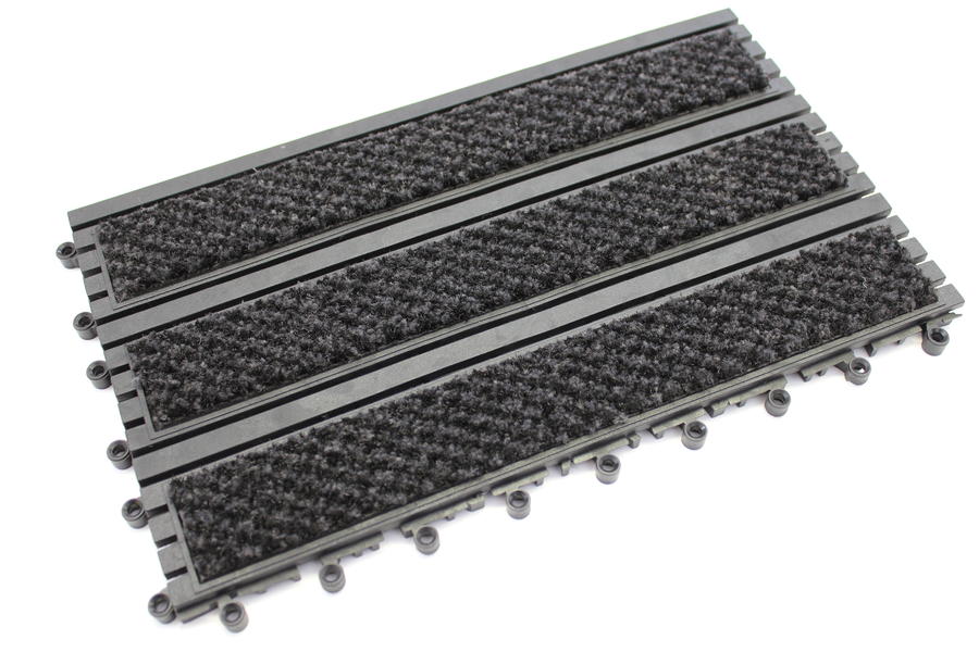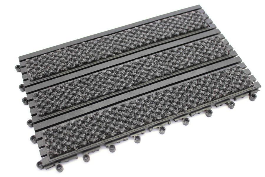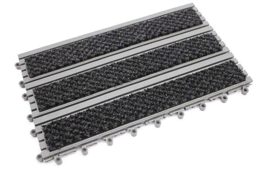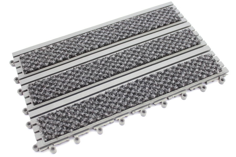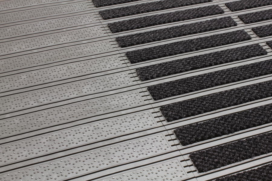 Si diseño y rejilla permite la circulación de líquidos y residuos pequeños manteniendo su superficie seca y limpia. Las zonas de alfombra raspan el calzado, permitiendo así una superficie segura y anti deslizante.